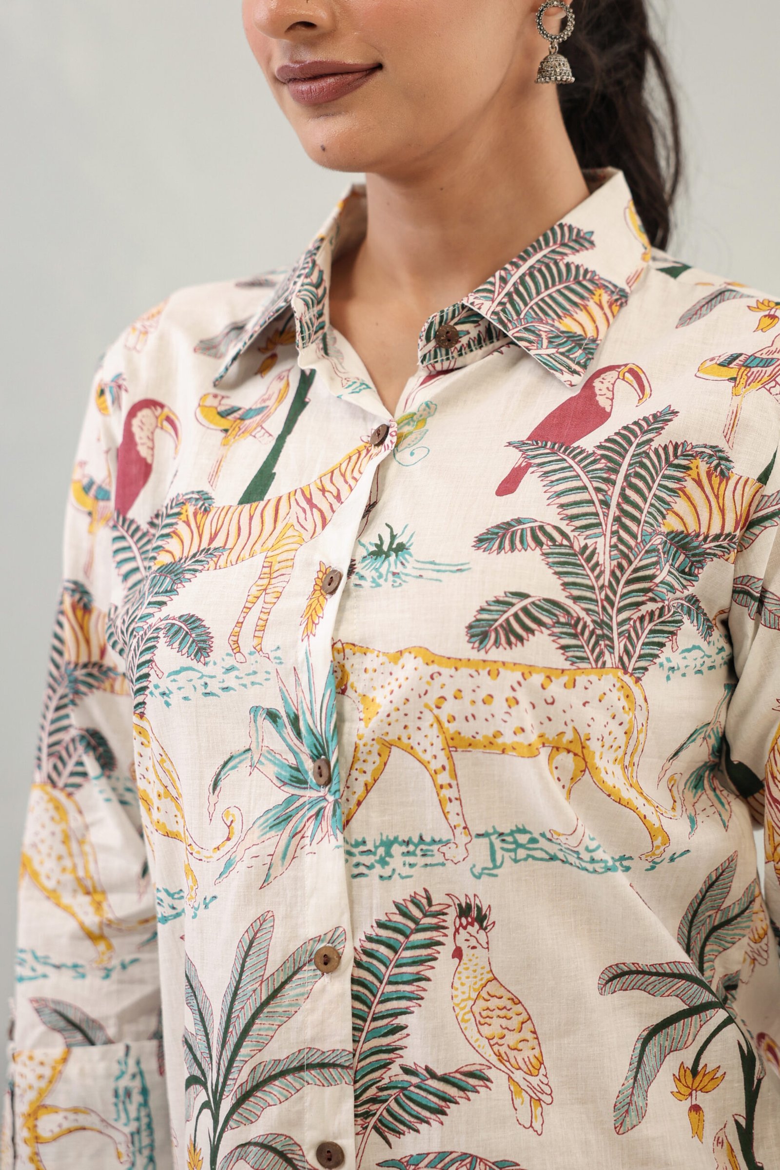 The soothing off-white base highlighted with nature-inspired ethnic prints adds a graceful charm, making it perfect for office wear, casual outings, daytime events, and light festive occasions. Lightweight and comfortable, this outfit ensures ease of movement while keeping your style polished and timeless.